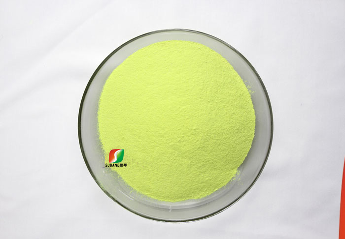 本品使用溫度常溫至280℃以內,可溶于80倍的軟水中,耐酸堿程度為pH=6~11,它可與陰離子表面活性劑或染料、非離子表面活性劑、雙氧水同浴使用。在同等用量的情況下白度比VBL、DMS高,而水溶性能與VBL和DMS相差無幾。與CBS-X相比,水溶性能稍差,但CBS-X可以隨水帶走,涂料干了容易遷移和泛黃,本品解決了在水性涂料、水性漆里熒光增白劑的耐溫性、耐候性、耐黃變、抗遷移性。